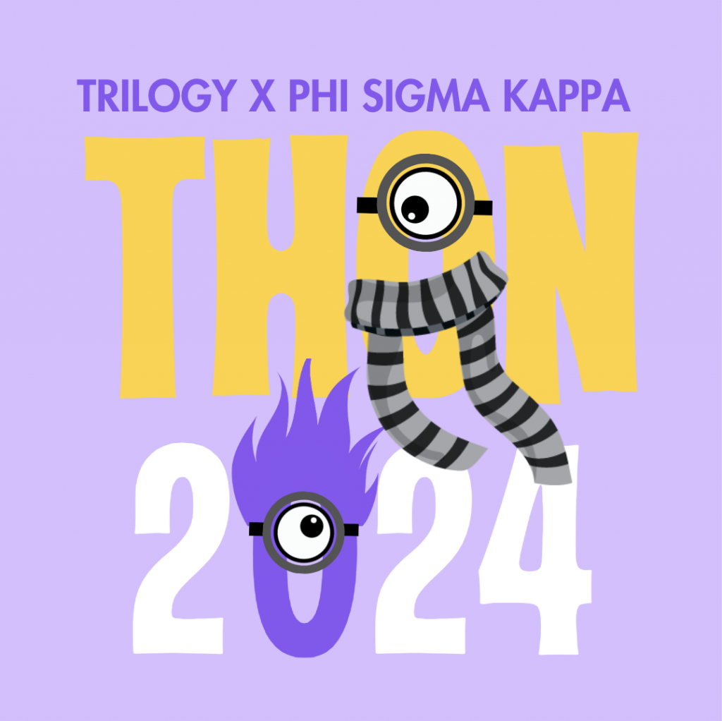 This is one of the original pieces I made for THON 2024. Trilogy’s theme was Despicable Me. I created a non-copyrighted version of a logo for our THON experience. This was put on t-shirts for all 250+ members to wear during THON.