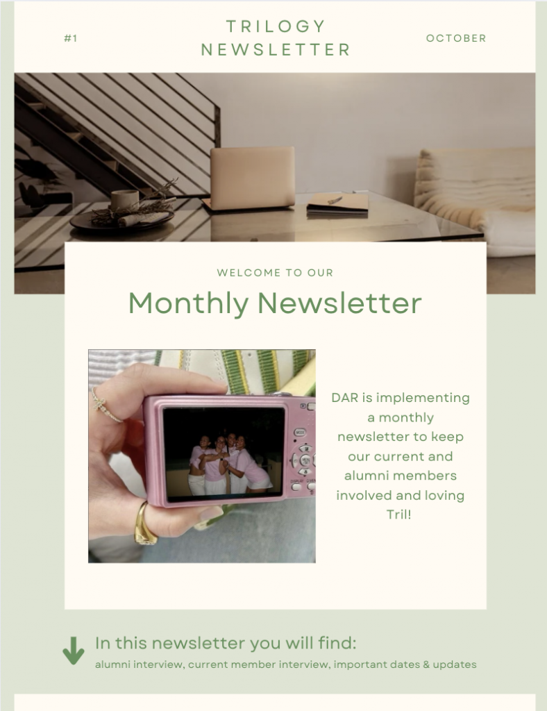 A newsletter sent out to alumni and donors to keep them interested in Trilogy. I wanted to start this as a way to reassure alumni that they are still a part of Trilogy’s amazing organization.